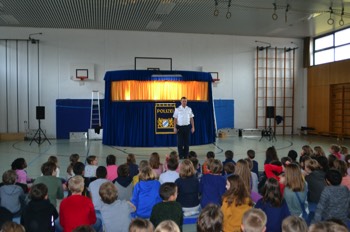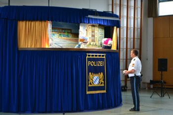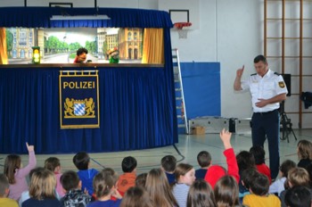 Es ist bereits zur Schultradition geworden, dass einmal im Jahr die Münchner Polizei im Haus ist und unsere Schulfamilie besucht. Nicht etwa, um schlechte Nachrichten zu überbringen. Nein! Ganz im Gegenteil! Die Verkehrspuppenbühne der Münchner Polizei ist jedes Jahr aufs Neue ein toller Termin, auf den sich Groß und Klein bei uns freut.