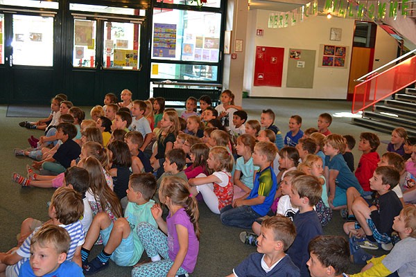 Die ersten Klassen durften beginnen. Sie lasen aus dem Buch „Geheim, geheim!“ von Sigrid Zeevaert vor und stellten ihre erworbenen Lesefertigkeiten unter Beweis.