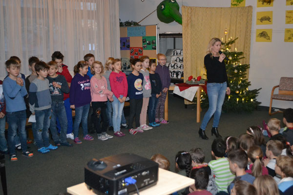 Den Anfang machte die Klasse 3d. Die Kinder sangen das Lied „Was soll das bedeuten?“ von D. Rehm und Frau Ehrichs begleitete sie dabei auf dem Klavier. Nach dieser musikalischen Einlage erzählten uns die Kinder die Geschichte „Das Eselchen und der Weihnachtsmann“ von Elisabeth Clark. Dazu wurden Bilder aus dem dazugehörigen Bilderbuch gezeigt.