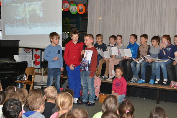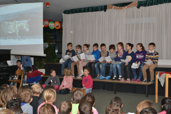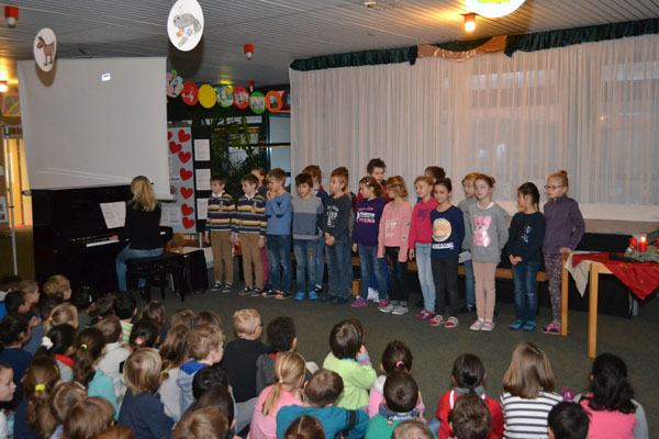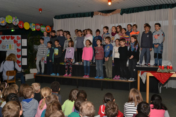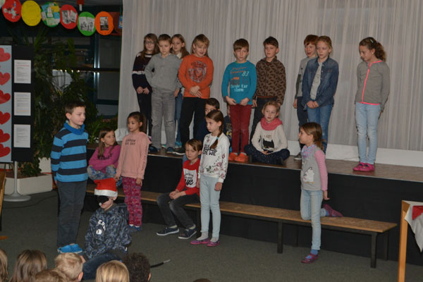 Die Kinder aus der Klasse 3c haben das Gedicht „Die Weihnachtsmaus“ von James Krüss auswendig gelernt. Sie spielten dabei kleine Szenen aus dem Gedicht nach. Mit Begleitung auf dem Akkordeon durch Frau Unholzer sangen die Klassen 3a und 3b das österreichische Weihnachtslied „Es wird scho glei dumpa“ von A. Reidinger und schlossen damit die Feier ab.