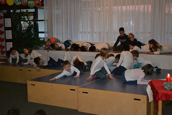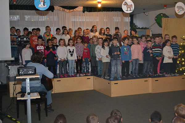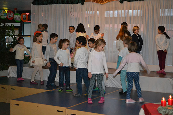 Die Kinder der Klasse 1d haben außerdem noch einen Schneeflockentanz einstudiert, den sie begleitet von Frau Müller auf dem Akkordeon zum Abschluss präsentierten.