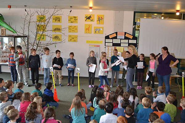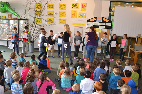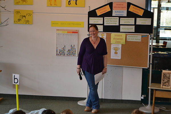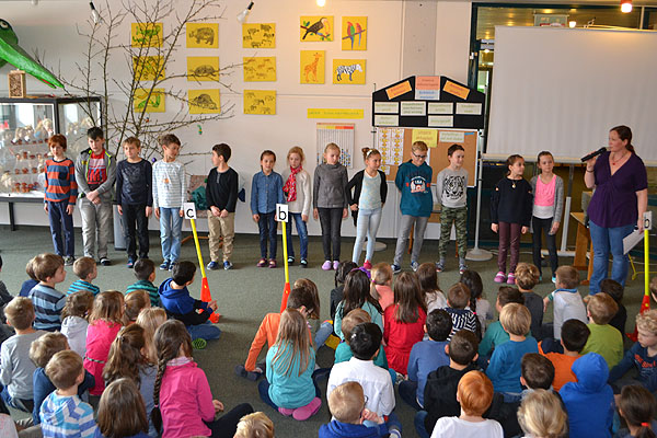 Wie immer wurde mit Spannung die Bekanntgabe des Schulsiegers erwartet. Diesmal sicherten sich die Klassen 3d und 4b punktgleich die Urkunde und den Pokal.