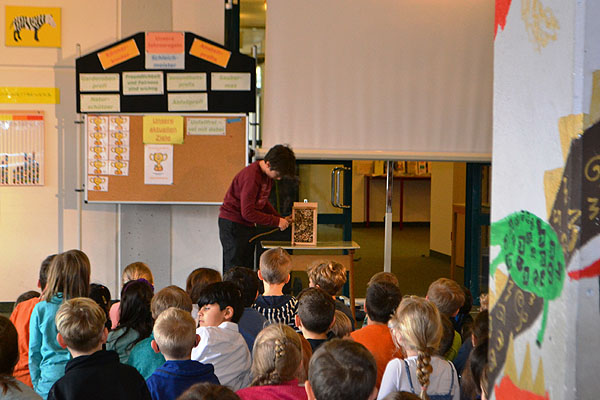 Am Donnerstag, den 15. März, versammelten sich alle Klassen nach der Pause in der Aula zu unserer 5. Schulversammlung in diesem Schuljahr. Routiniert fanden alle schnell einen Platz und Frau Ehrichs begrüßte die Schulfamilie ganz herzlich. Wie immer sangen alle zu Beginn gemeinsam unser Schullied und wurden dabei von Frau Müller auf der Gitarre begleitet.