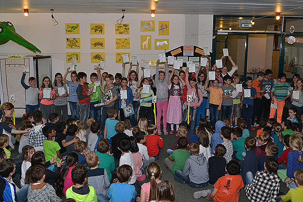 Im März diesen Jahren nahmen unter etwa 11 000 Schulen auch Kinder aus unserer Schule am Känguru Wettbewerb der Mathematik teil. Viele Schüler aus den vierten Klassen, aber auch zwei Drittklässler tüftelten mit rauchenden Köpfen an mathematischen Knobelaufgaben. Heute wurden die Sieger dieses Wettbewerbs bekannt gegeben, die mit kleinen Preisen belohnt wurden. Alle Teilnehmer erhielten eine Känguru-Urkunde.