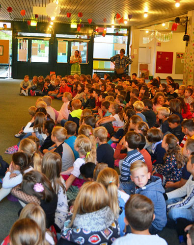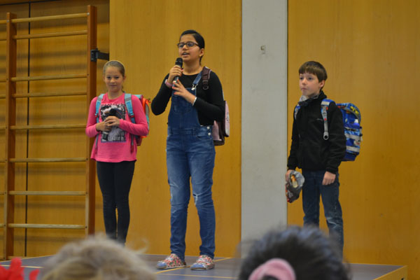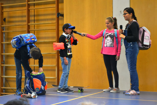 Anschließend gingen die Theaterkinder der Frage nach „Was braucht ein Schulkind alles in der Schule?“ und präsentierten den Schulanfängern ihre Ergebnisse in einem lustigen kleinen Theaterstück. Auch die Schulsozialarbeiterin Frau Christoph sowie einige ausgebildete Streitschlichter stellten sich und ihre Arbeit bei dieser Gelegenheit kurz vor.