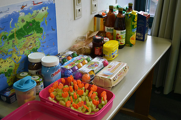 Endlich konnte gefrühstückt werden. In der Gemeinschaft schmeckte es natürlich doppelt so gut. So kamen nicht nur die süßen Speisen bei den Kindern gut an, sondern auch kleingeschnittenes Gemüse und Obst.