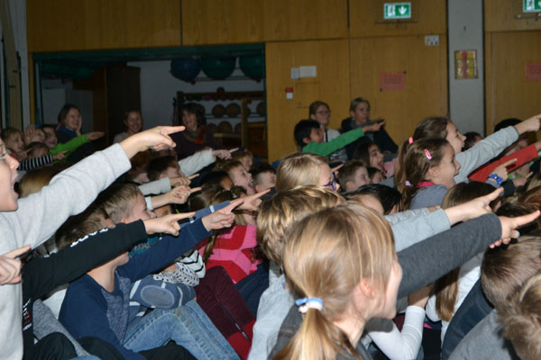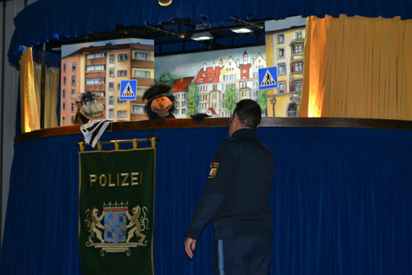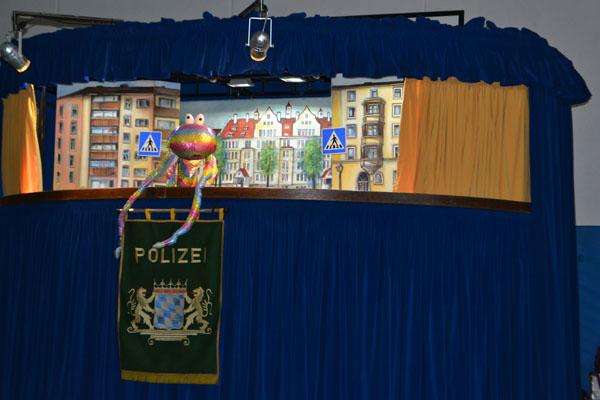 Wir sind sehr froh darüber, auch dieses Jahr wieder die Münchner Polizei mit ihrem Verkehrstheater bei uns in der Turnhalle begrüßen zu dürfen. In ihrem neuen Stück „Winniequatsch, der Isarindianer“ ging es vorwiegend um die Themen „Richtiges Verhalten am Zebrastreifen“ und „Mobbing“. Die Polizisten schafften es, die Kinder durch die lustigen und spannenden Erlebnisse des Isarindianers in der Münchner Innenstadt und an der Isar in ihren Bann zu ziehen. Dabei bekamen unsere Schülerinnen und Schüler zahlreiche nützliche Ratschläge für den Straßenverkehr und den Umgang mit ihren Mitschülern an die Hand. Ganz besonders fieberten die Kinder mit, als es darum ging, den Bösewicht der Geschichte, die Isarkrake dingfest zu machen, denn diese stachelte in der Geschichte immer wieder zu falschem Verhalten an. Wir bedanken uns ganz herzlich für diese sehr amüsante und lehrreiche Darbietung!