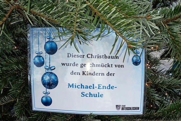 Schön ist er geworden, der Tannenbaum der Michael-Ende-Grundschule! Und nicht nur wir, sondern alle Besucher des Schleißheimer Weihnachtsmarktes können ihn bewundern. Wir freuen uns sehr, dass wir an dieser Aktion der Stadt teilgenommen haben!